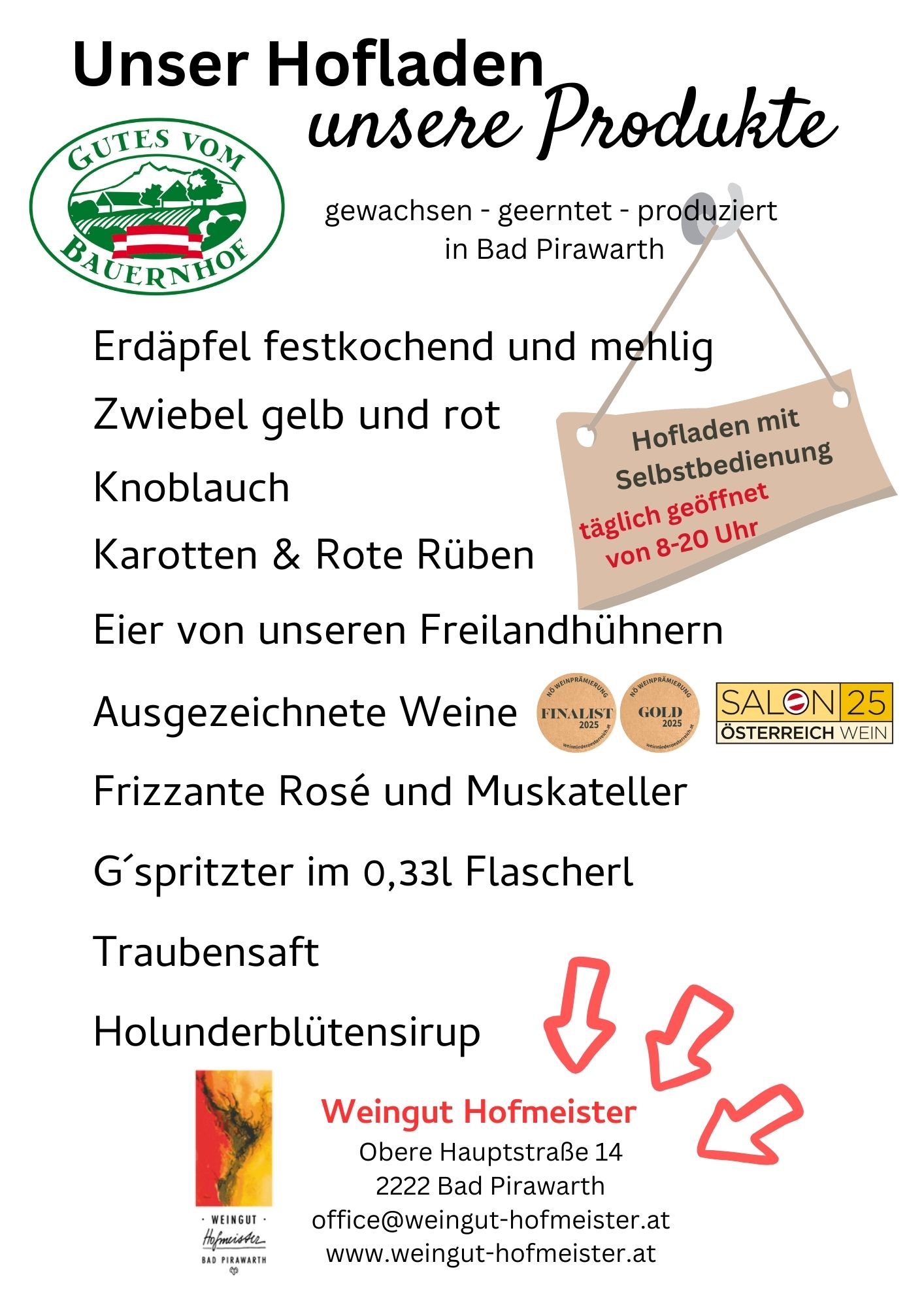 Unser Jungwein ´HOFI´s JUNGER 2025´ist ab sofort erhältlich. Er präsentiert sich frisch und fruchtig! Der perfekte Vorbote für den neuen Weinjahrgang 2025.